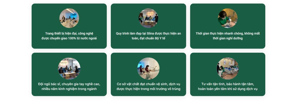 Slina tự hào có đội ngũ bác sĩ, chuyên gia với trình độ chuyên môn cao, nhiều năm kinh nghiệm trong ngành thẩm mỹ và làm đẹp, cam kết mang đến cho khách hàng kết quả tốt nhất
